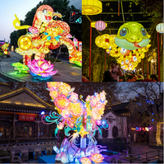漫步老门东,一年一亮的中式浪漫又如期而至 。12生肖灯点亮“迎宾路”,欢迎八方来客。扭转25次,钻过100个“钱眼”,金蛇送福,百财聚来,2025要暴富!百蝶飞舞,状若“摇钱树”,一年缤纷尽飞来。
