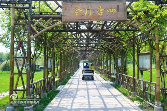 四季月令的竹架上爬上了葡萄藤,现在,应该已经挂满了小小的葡萄。